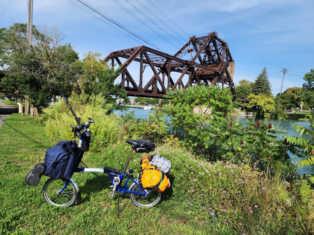 I left my touring bike, the Kona Sutra, at home and instead took the Brompton C Line on this trip. The Brompton is a folding bike, it’s not necessarily a touring bike, but as they say, you can tour on any bike. Because this is my very first Brompton tour, I set my daily distance limit to about 50 km, which split the Erie Canal route to an 11-day journey.