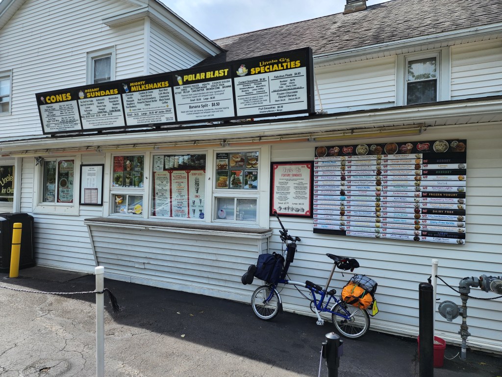 On the way to Lockport I passed through Pendleton, where I stumbled upon Uncle G’s ice cream shop. Unfortunately I was too early, the place opened at 12:00. However, I spoke to the staff who were already inside, and they opened the place up a little bit earlier and I had two scoops of delicious ice cream. Uncle G’s ice cream is a great stop if you’re riding the Erie Canal trail.